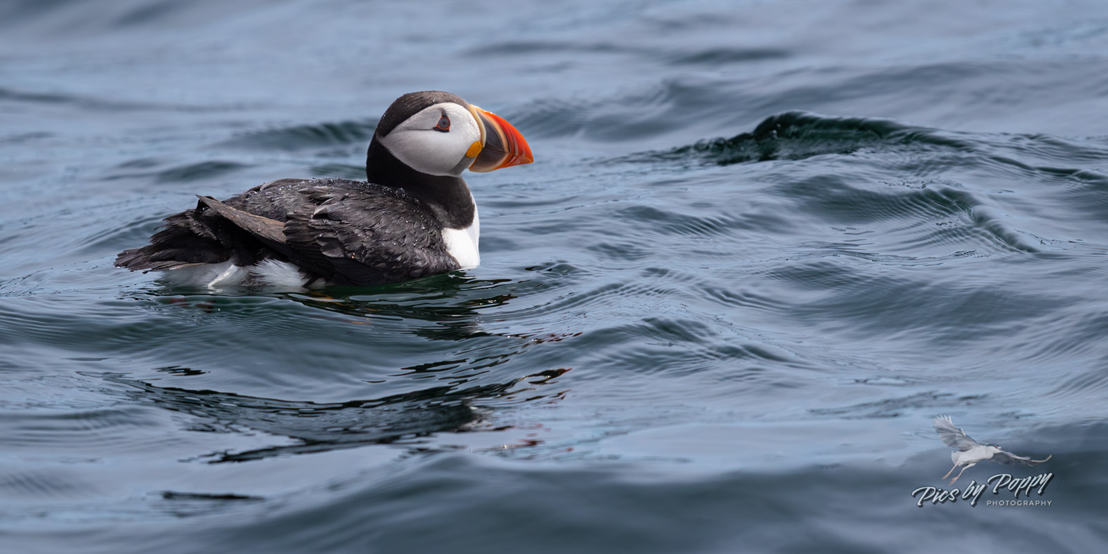When we arrived at the island, I immediately headed down to the bow of the boat to setup and start trying to capture some puffin images. Not long after I set up, I found that taking pictures of fast, little birds while on a large, moving ship in semi-heavy seas is far more difficult than I anticipated. Trying to follow and capture images of these cute little guys on a ship that is constantly listing back and forth was hard, really hard. In the end, after making two quick trips around the island, I found that I was unable to capture nearly as many images as I had hoped. Nonetheless, frustration aside, I did really enjoy the experience, learned a lot and have a true appreciation for these birds and more so, the people that are behind establishing this new colony and the people that help maintain it to this day. If we ever make our way back up to Maine, we are definitely getting out to see these great little birds again, maybe next time on our personal charter.