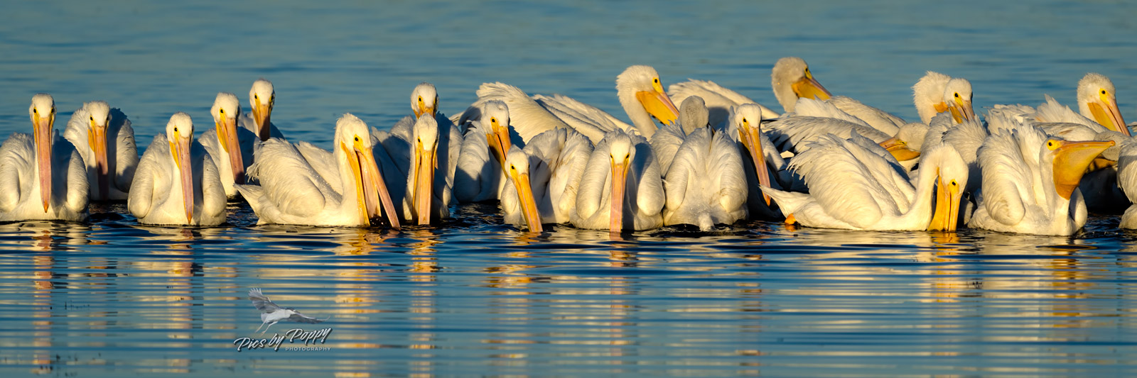 As we were watching the pelican activity, I watched this one pod of pelicans form together as they floated along feeding on the pool’s grass bed. As they would feed, each pelican would dip its head deep into the water completely submerging its head and neck as it would reach to the bottom of the pool to grab mouthfuls of grass. They would throw their heads back hard as they tried to get the grass deeper in their mouths to swallow. Back and forth we watched this action, each pelican having its own rhythm of feeding, head in, head out, constant movement of hungry White Pelicans feeding.